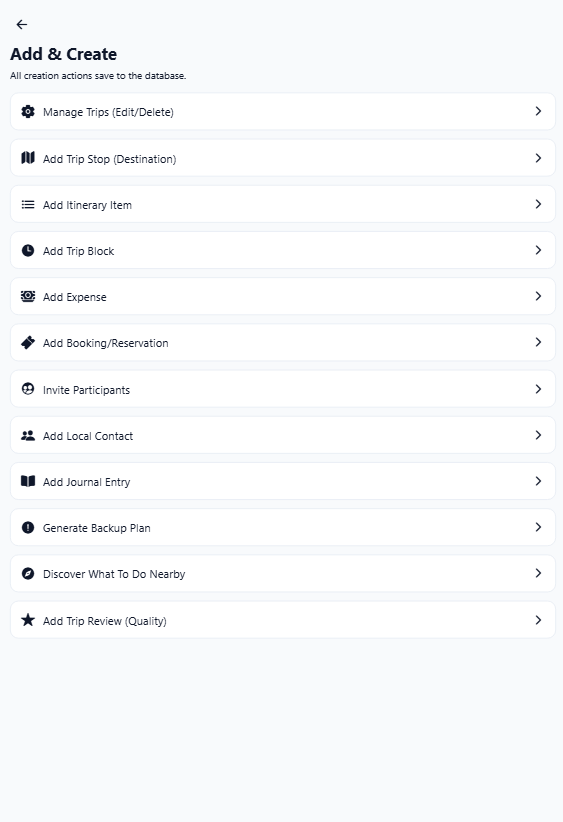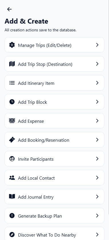 Manage expenses, reservations, transport, and lodging without losing track of the plan. Everything stays organized and easy to search while you travel.